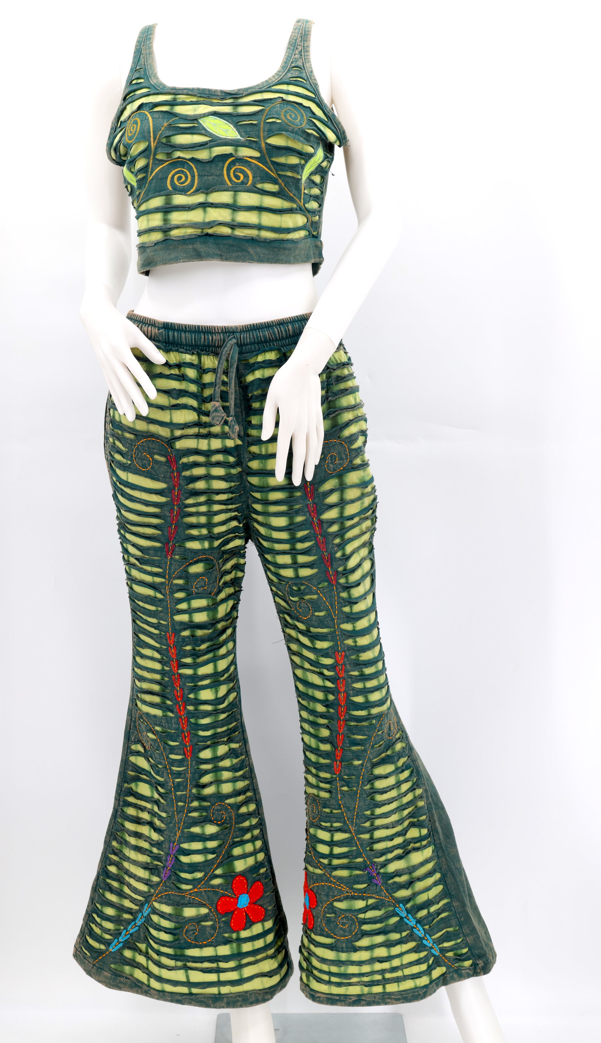 Every clothing item is meticulously handmade, reflecting the care and consideration put into their creation, resulting in unmatched quality. Because our products are handmade, the patchwork colors and patterns on each pair of trousers and tops may vary, making each one unique. The provided image serves as a general representation of the product's appearance.