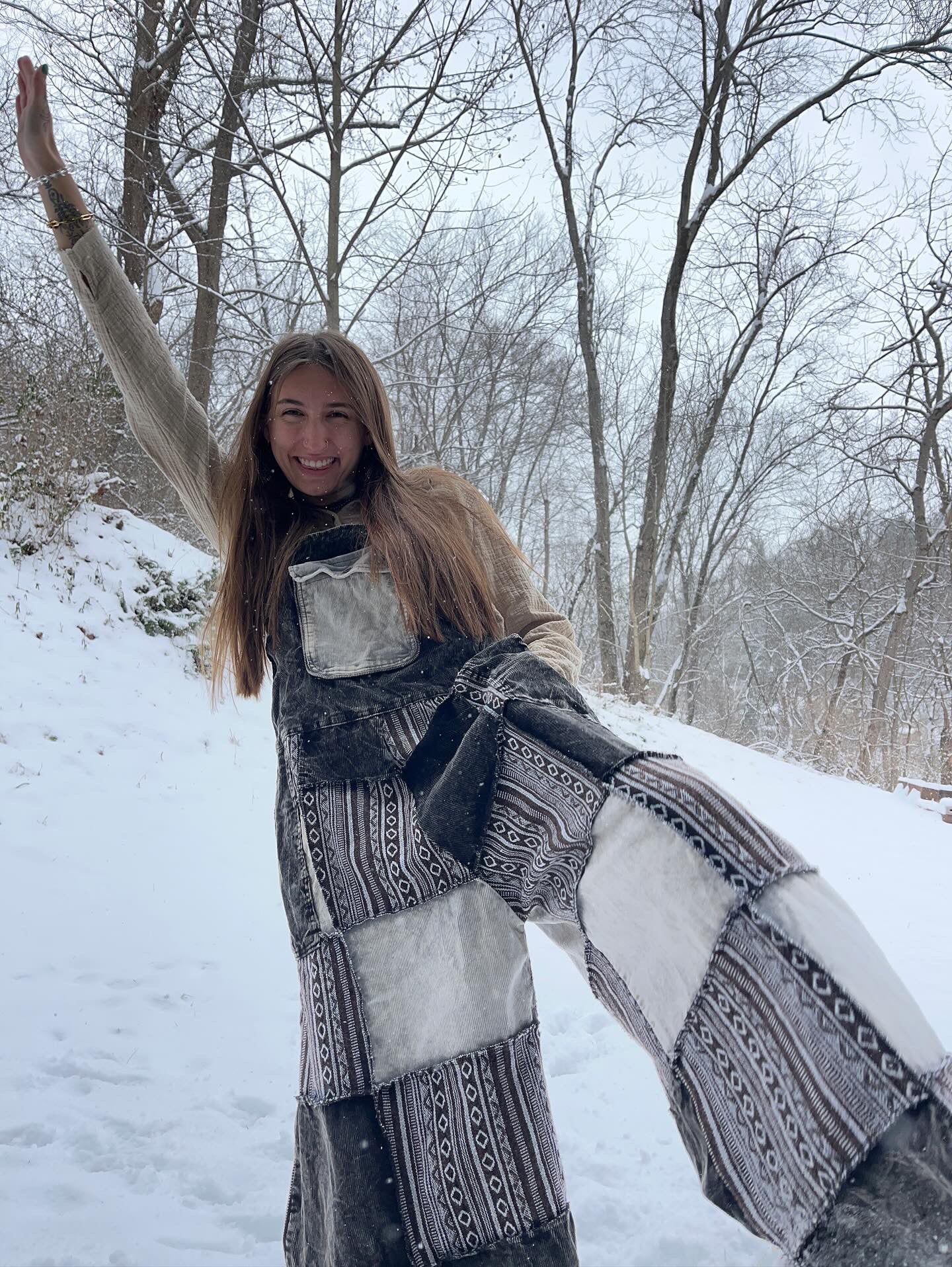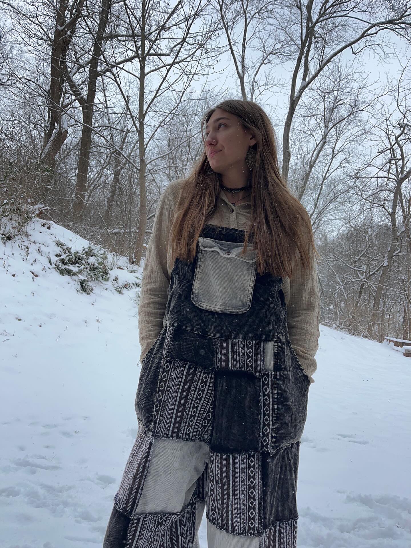 Every clothing item is meticulously handmade, reflecting the care and consideration put into their creation, resulting in unmatched quality. Because our products are handmade, the patchwork colors and patterns on each pair of overalls may vary, making each one unique. The provided image serves as a general representation of the product's appearance.