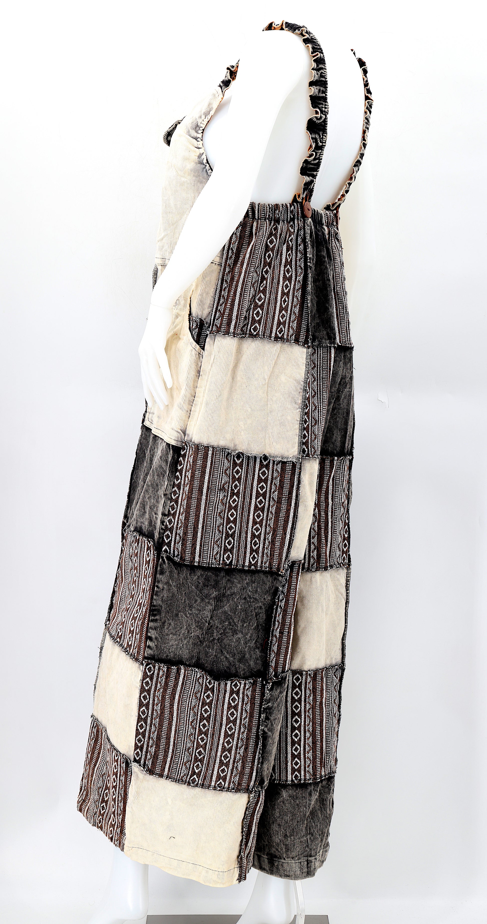 Cotton Hippie Handmade Gheri Patchwork Corduroy Mix Wide Leg Bohemian Overalls