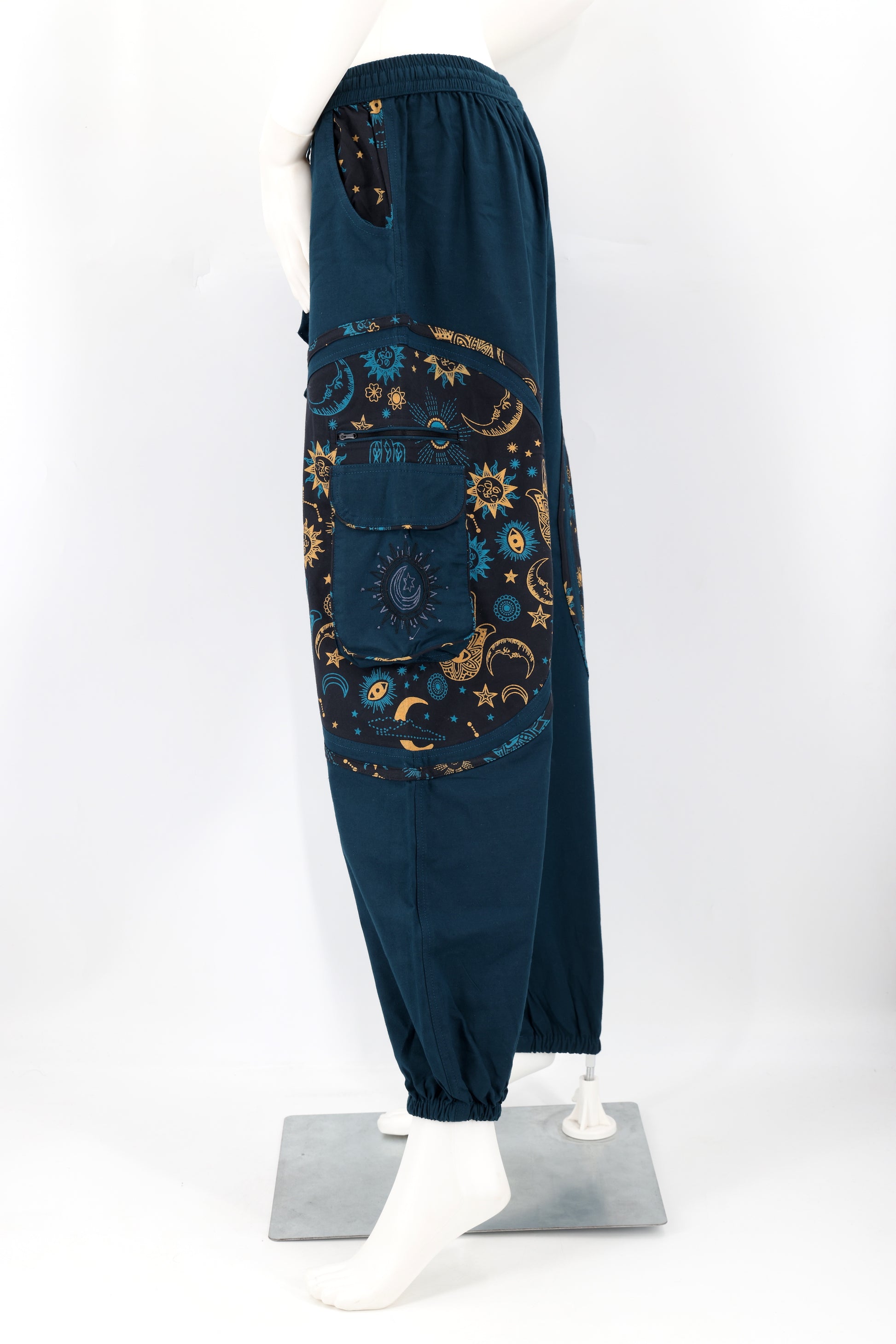 Cotton Hippie Handmade Harem Sun, Moon And Stars Embroidered Celestial Patterned Bohemian Pants