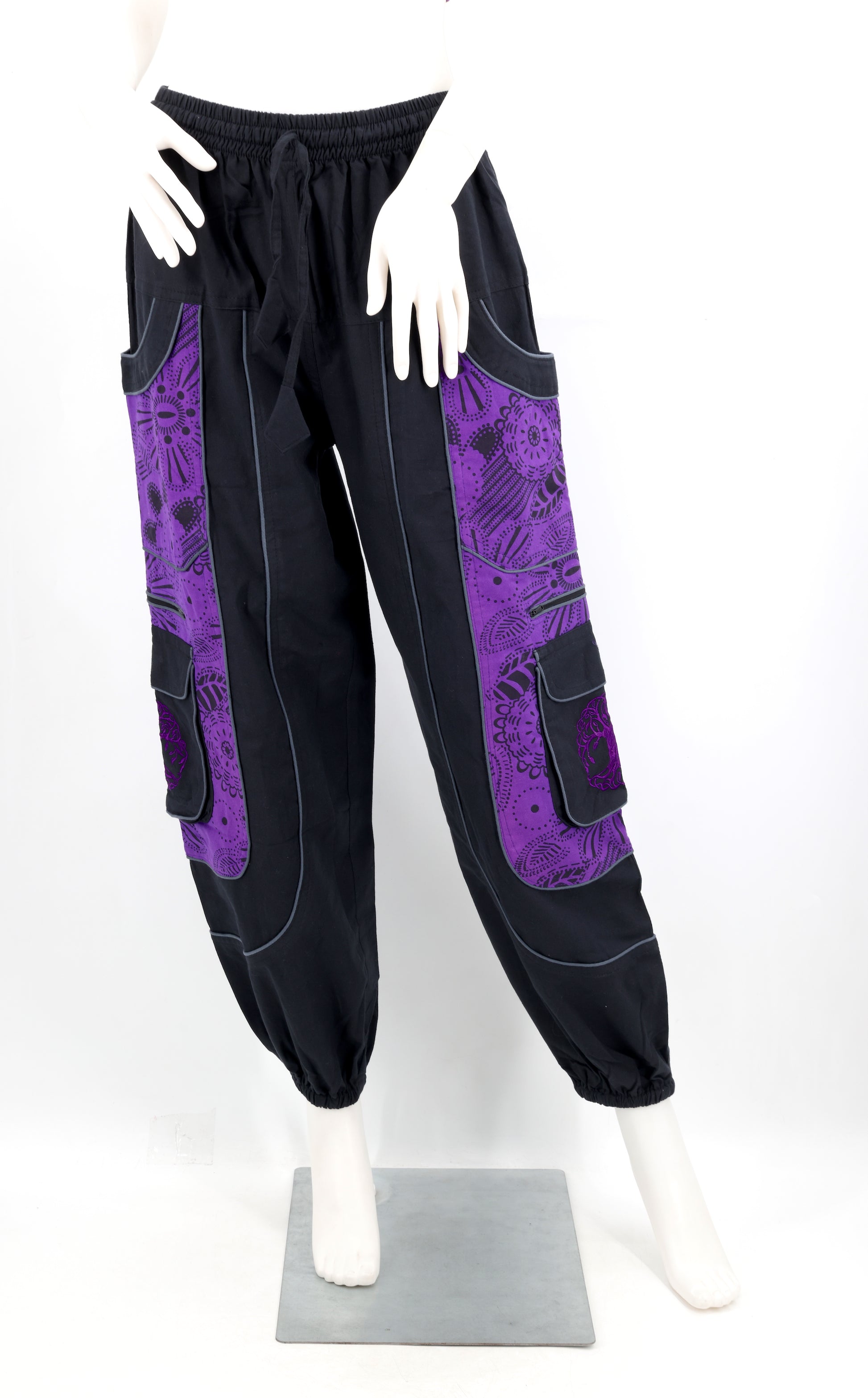 The Tree of Life - connecting earth and heaven, roots and branches, past and future. This timeless symbol is beautifully embroidered on soft, unorthodox-pattern cotton harem pants that have a perfectly broken-in vintage feel.