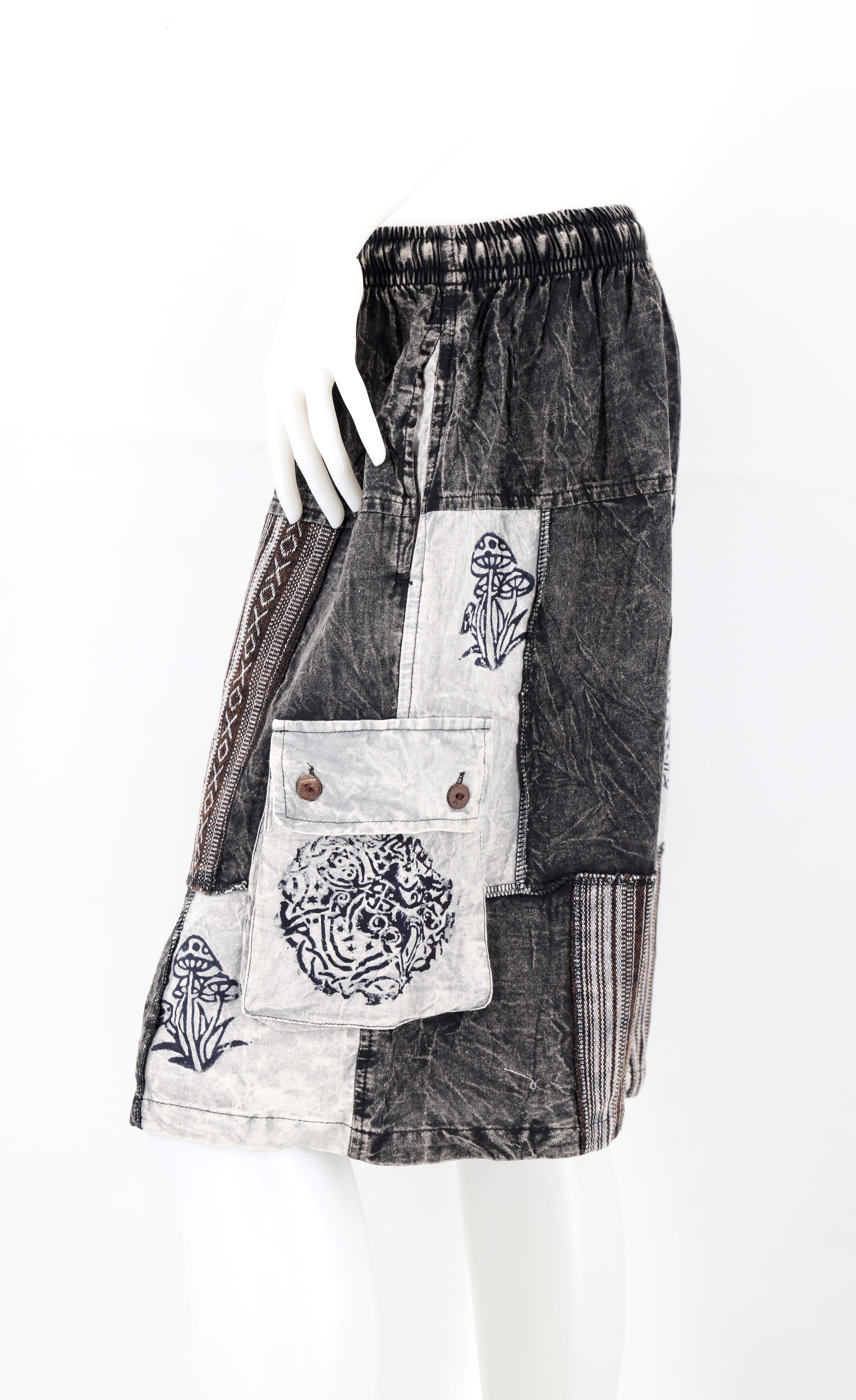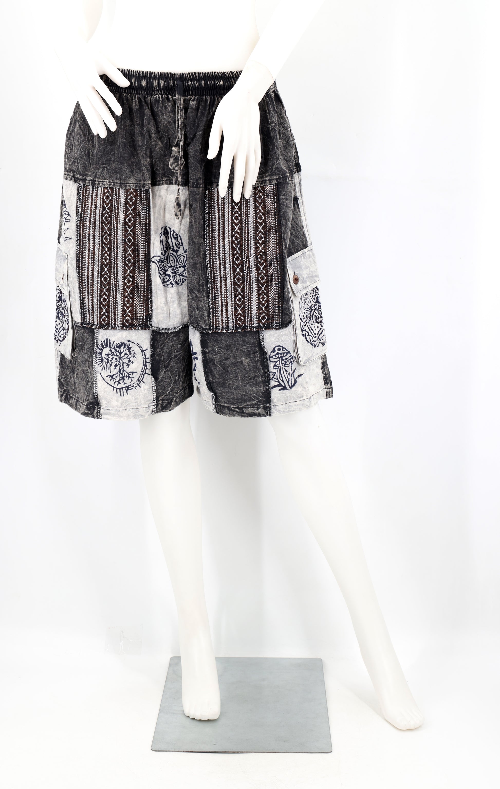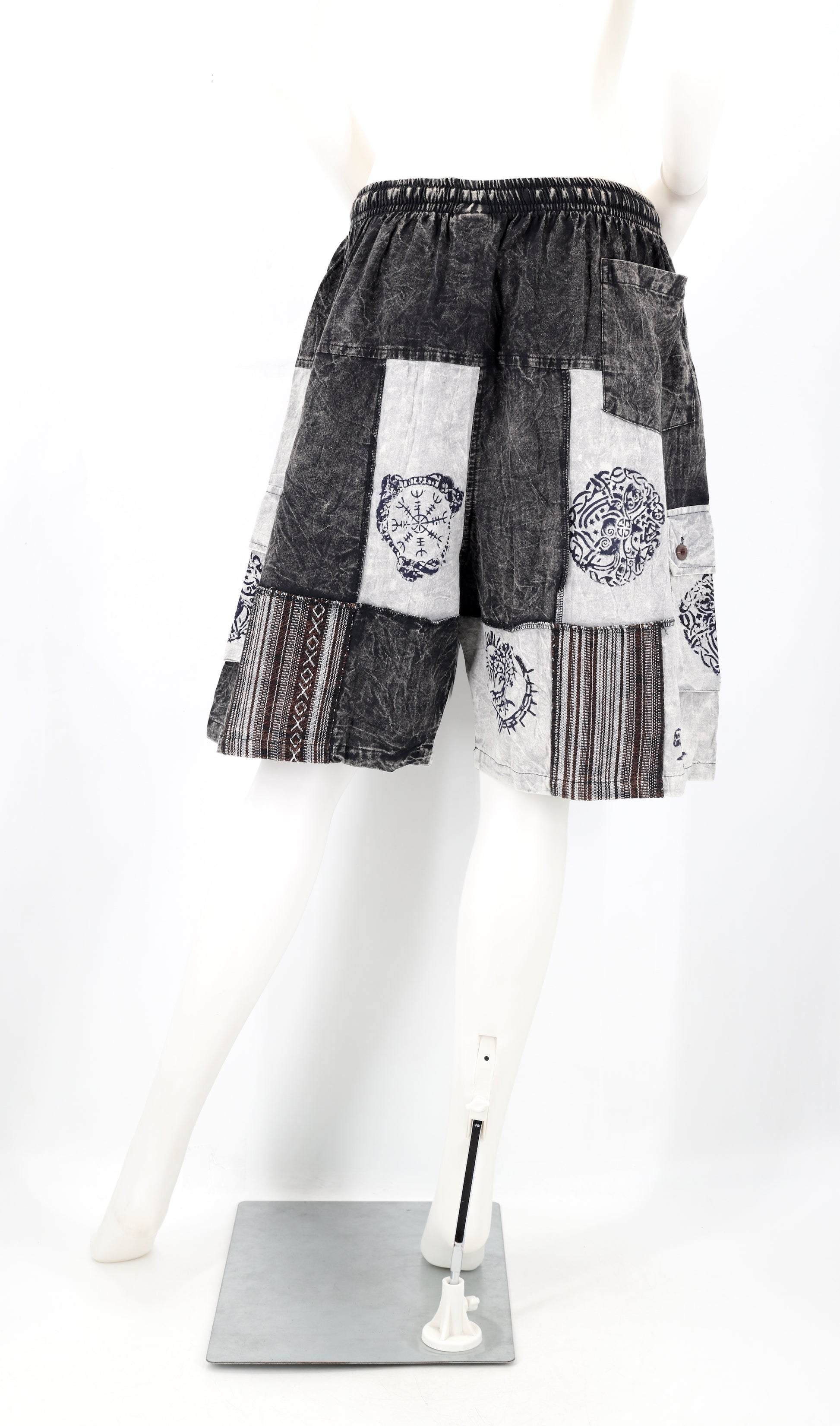 Cotton Hippie Handmade Pagan Symbols Print Patchwork Lightweight Bohemian Shorts