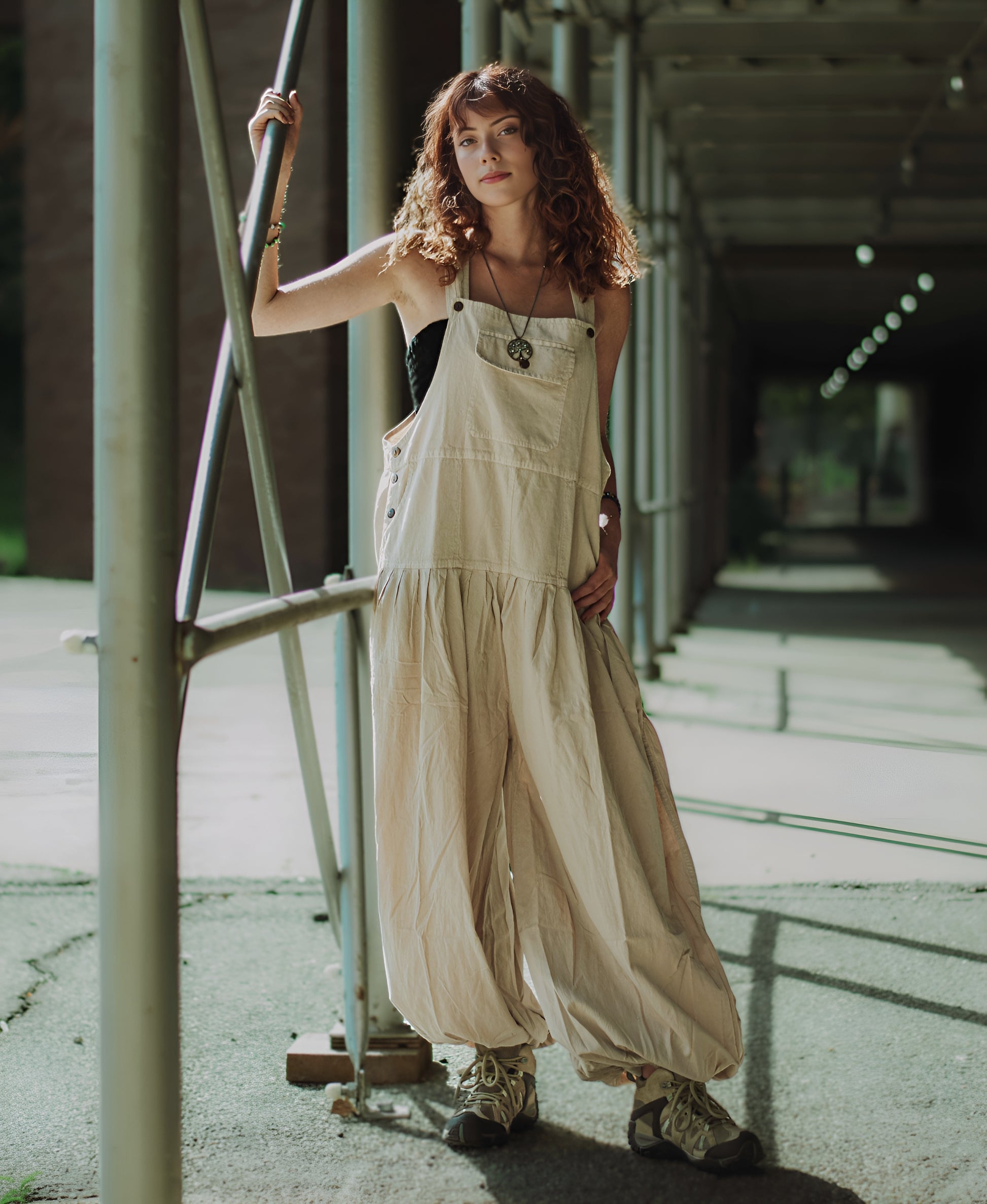 Cotton Hippie Handmade Solid Color Balloon Bohemian Overalls